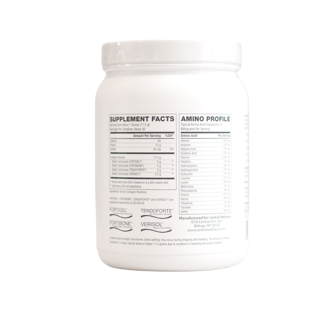Advanced Collagen Peptide Support contains Fortigel®, Fortibone®, Tendoforte®, and Verisol® collagen peptides to promote vibrant skin and nails while also supporting healthy joints, bones, ligaments, and tendons. Fortigel® promotes joint health. Fortibone® promotes bone health. Tendoforte® promotes healthy ligaments and tendons. Verisol® supports skin and nail health.
